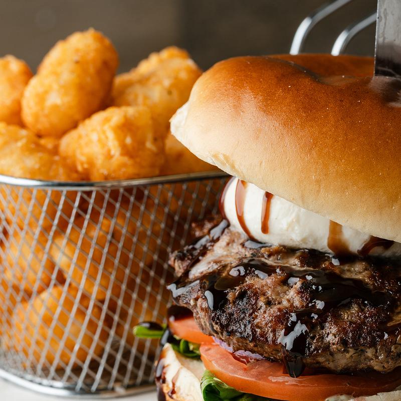 Burrata, tomato, red onion, spinach, pesto aioli, and balsamic glaze served on a brioche bun.